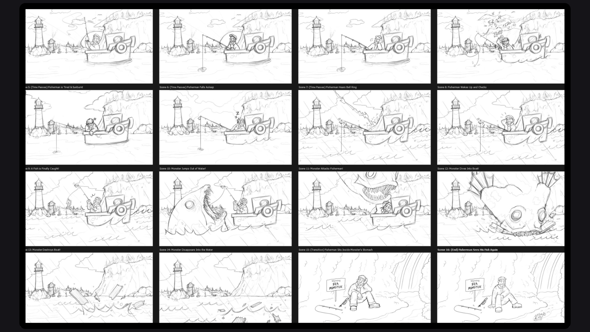 Although the entire process was challenging, we were all excited about the final result. We initially had some doubts about the art direction we were pushing towards, however the final product ended up looking exactly as we imagined it in our concept art and color scripts. Hook’d showcases the awesome work done through the collaboration between a small team of talented artists with different skill sets, which is something I personally value seeing in the final animation. We were able to use our individual strengths to our advantage and create something we are all proud of.